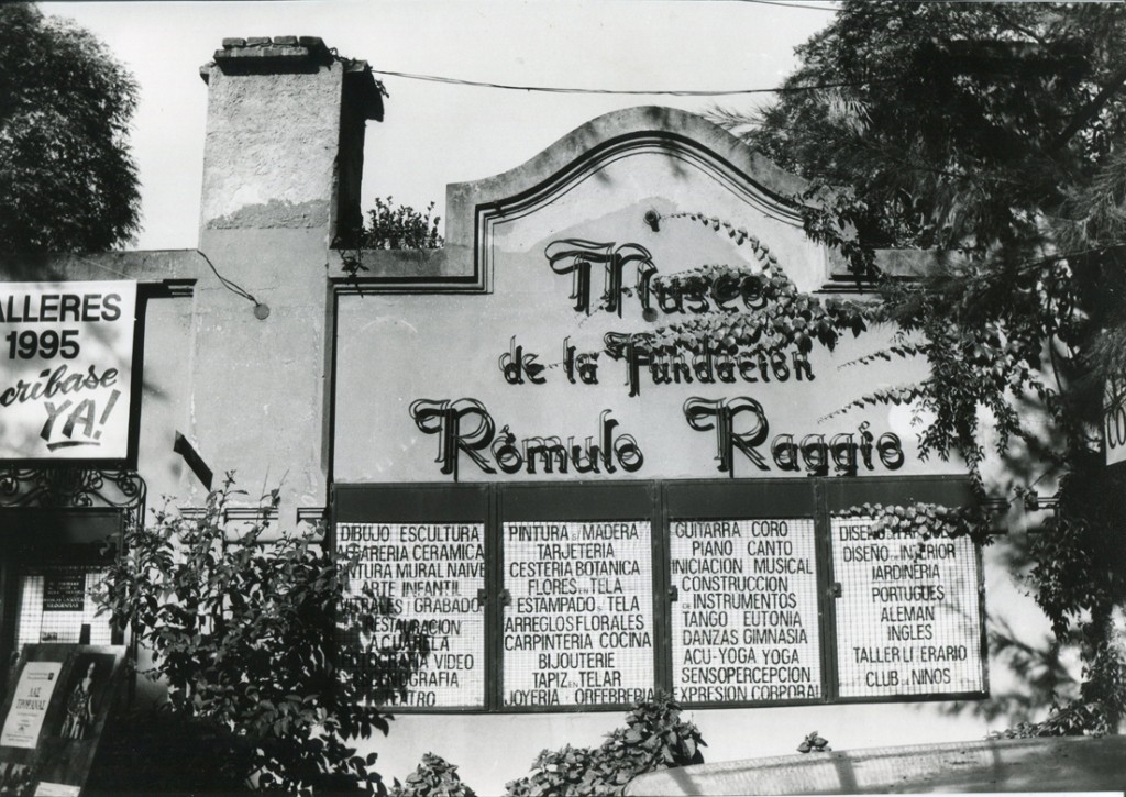 La imagen muestra la fachada del Museo de la Fundación Rómulo Raggio. Fundada por el ingeniero Miguel Mario Raggio el 30 de agosto de 1961, la fundación es una entidad civil privada sin fines de lucro, con personería jurídica desde 1963. Según su estatuto, su objetivo es promover la investigación científica y tecnológica, así como las artes, las letras y la cultura en todas sus formas. En sus primeros años, la fundación albergó laboratorios de investigación y una importante biblioteca dedicada a la Agronomía, Biología, Química y ciencias afines.
