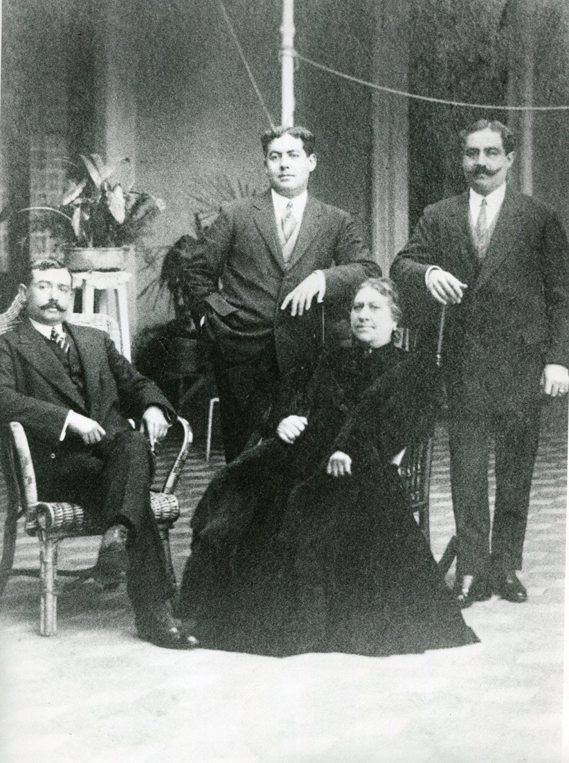 La imagen muestra a Emilia Pelliza de Rodríguez acompañada por sus hijos Mariano, Alfredo y Franco.