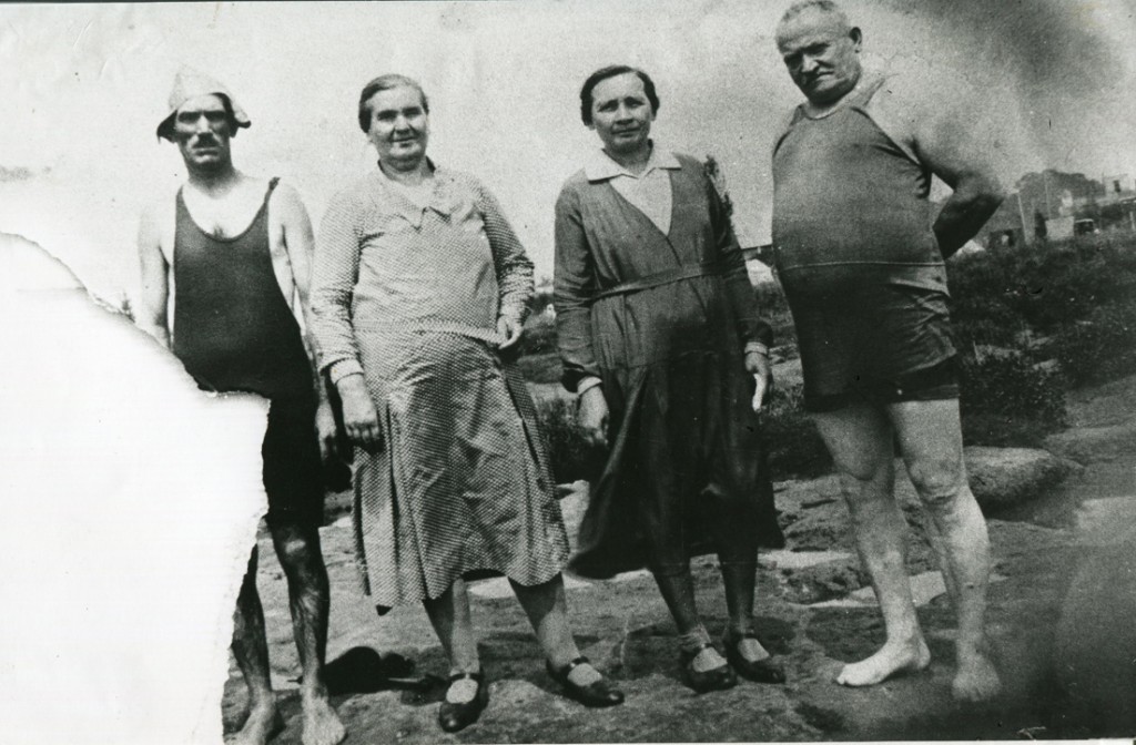 La imagen muestra a los integrantes de la familia Andrés de Florida en el balneario de Vicente López.