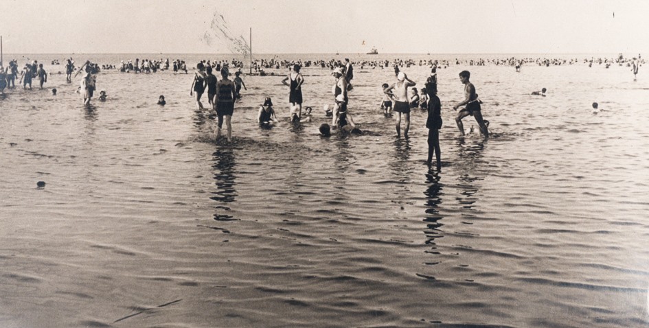 Vecinos disfrutando su tiempo libre en un balneario del Río de la Plata de la costa de Vicente López.