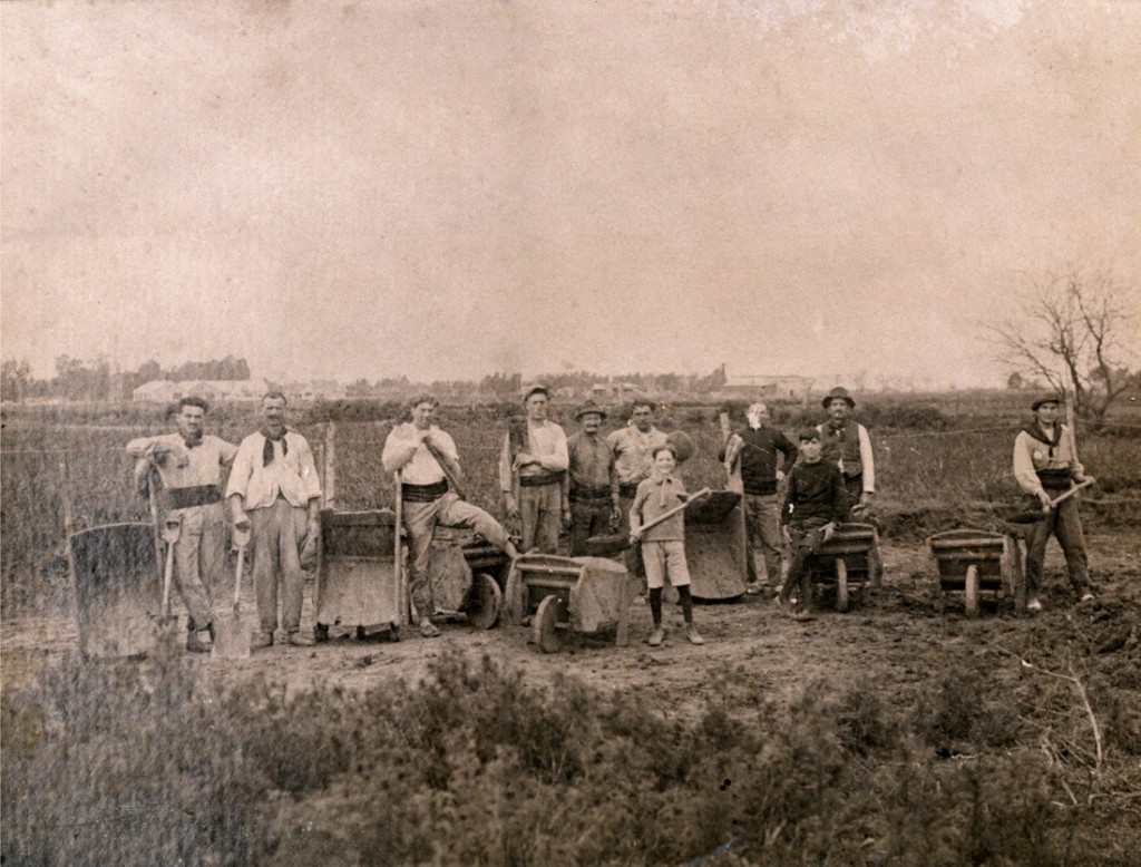 Obreros de la construcción en un horno de ladrillos de Villa Martelli.