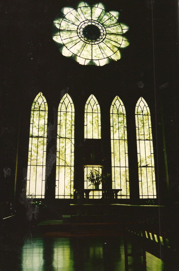 Vista del imponente vitral desde el interior de la Parroquia Jesús en el Huerto de los Olivos.
