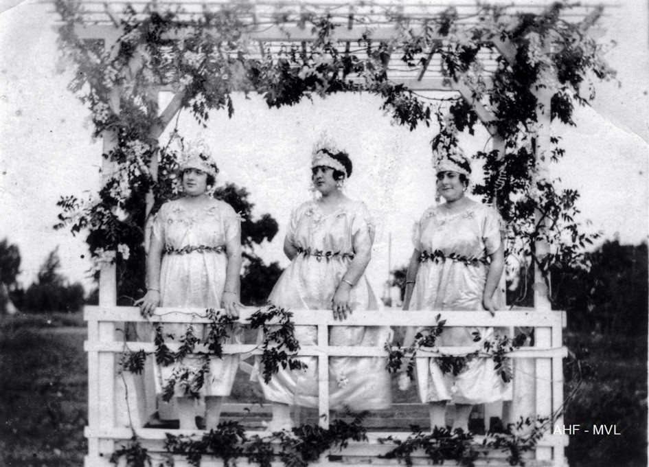 Cándida Grau, María Stoppani y Delia Trabucco durante un corso en Florida, en el año 1921. Copia donada por Marta Ares.