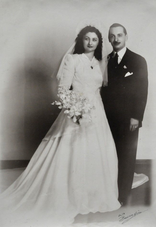 Una pareja de recién casados, residentes de Vicente López, posa para una fotografía conmemorativa poco después de contraer matrimonio.