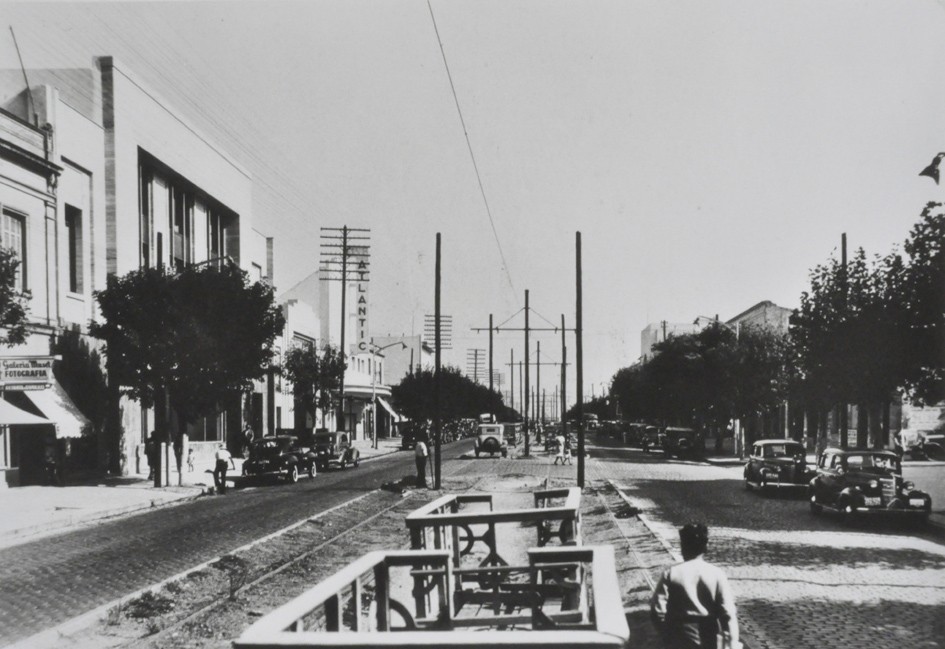 Vista de la Avenida Maipú, a la altura del 2500, frente al Consejo Deliberante de Vicente López, en el momento en que se montaban los palcos para el corso de carnaval.