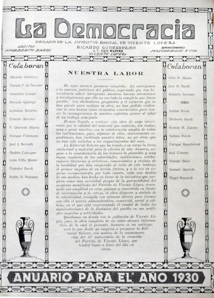 Tapa del anuario del diario La Democracia, órgano de prensa de la juventud radical de Vicente López.