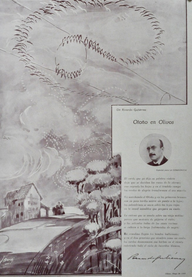Poema "Otoño en Olivos" de Ricardo Gutiérrez, publicado en el Anuario La Democracia órgano de difusión de la juventud radical de Vicente López.