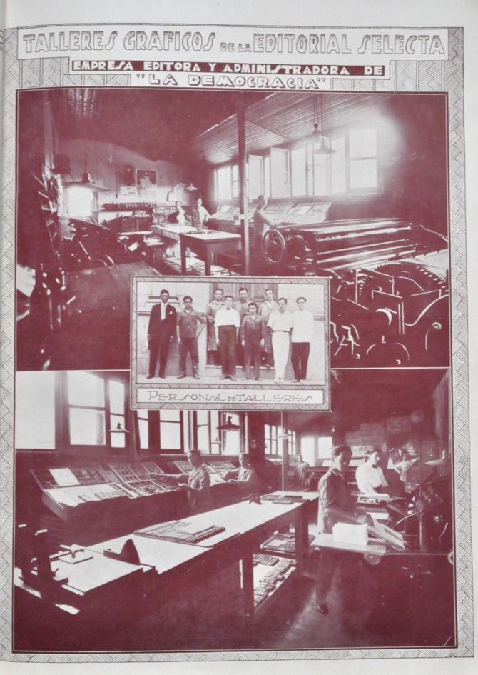 Personal de los talleres gráficos de la Editorial Selecta, empresa editora y administradora del Anuario La Democracia, órgano de la juventud radical de Vicente López.