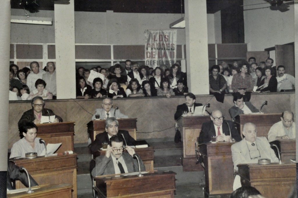 Vista parcial del cuerpo de concejales en sesión, con asistencia de vecinos en la sala de debates.