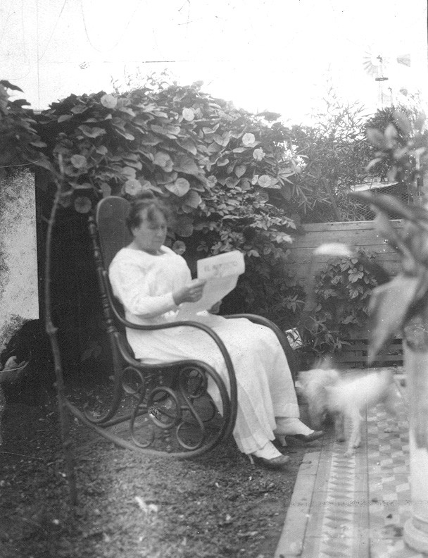 Julieta Lanteri en su casa de Olivos, en marzo de 1919, a pocos días de las elecciones durante una nota que le efectuara la revista Caras y Caretas.