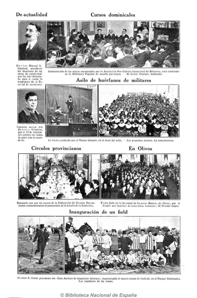 Fiesta organizada por el Comité pro familias de reservistas italianos de Vicente López en la Sociedad de Socorros Mutuos de Olivos. La imagen fue publicada en la revista Caras y Caretas N.º 887, página 67.