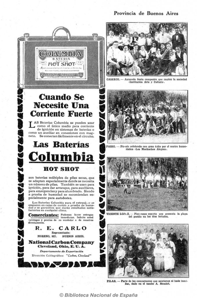 La nota de la revista Caras y Caretas presenta una fotografía de la playa de Vicente López en un día feriado de 1917. La imagen muestra a los bañistas disfrutando del sol y del Río de la Plata, reflejando la actividad recreativa típica de este destino costero.