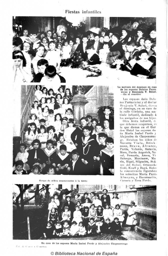 La señora Dolores Parravicini y su esposo, el doctor Benjamín T. Solari, organizaron una fiesta infantil para los amigos de sus hijos.