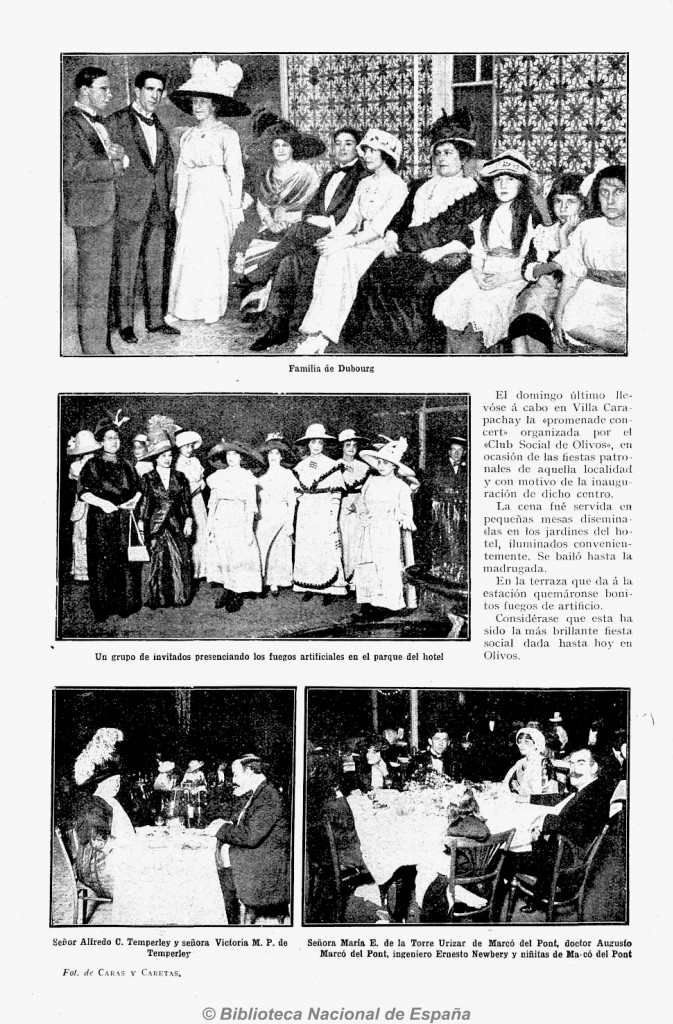 Fotografía en la revista Caras y Caretas de las fiestas patronales realizadas en el Hotel Villa Carapachay, organizadas por el Club Social de Olivos, que además celebró su inauguración.