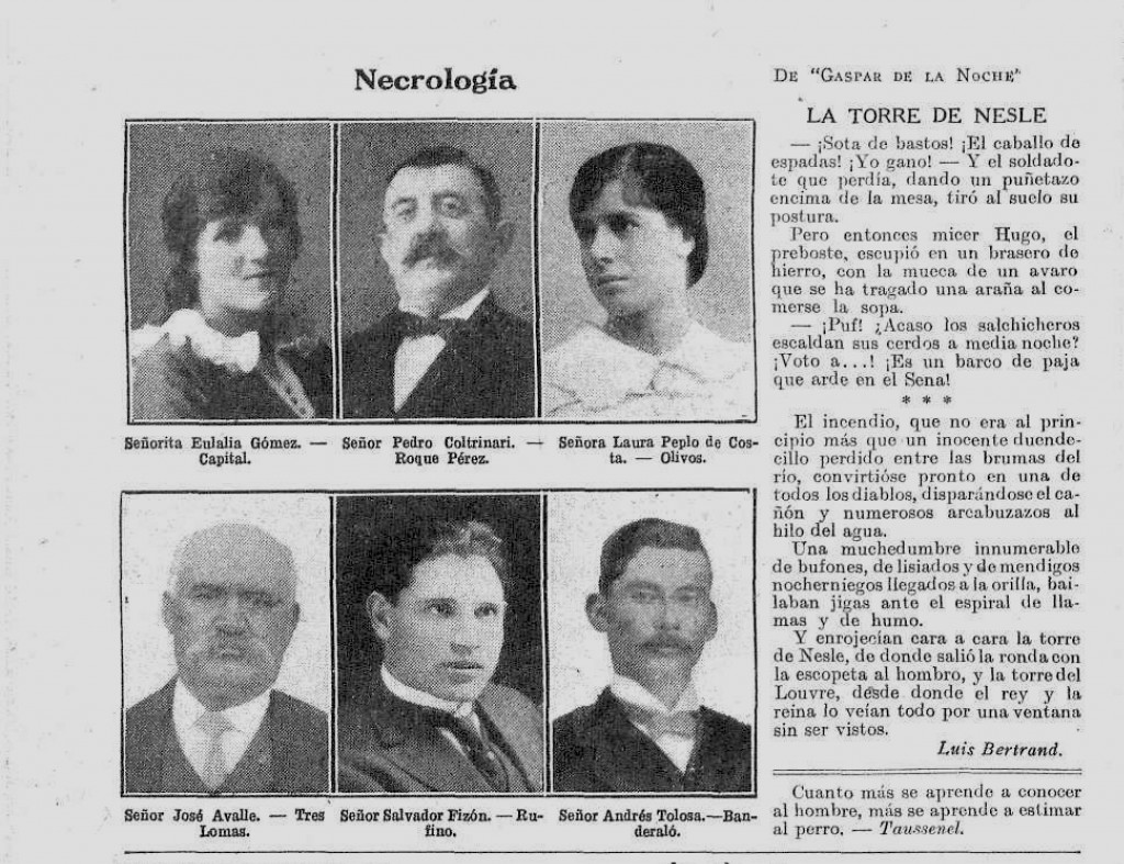 Aviso necrológico de la señora Laura Peplo de Costa, vecina de Olivos.