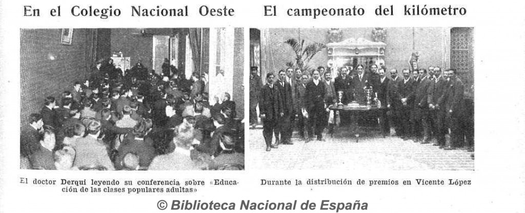 Fotografía publicada en la revista Caras y Caretas el 24 de octubre de 1908. La imagen captura el momento de la distribución de premios en Vicente López.