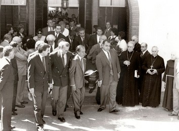 El presidente de la Nación Carlos Saúl Menem acompaña el féretro de su hijo, Carlos Facundo, al salir de la capilla de la Quinta de Olivos.