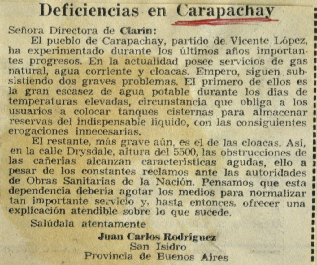 Reclamos de vecinos por la escasez de agua potable y deficiencias de la red cloacal.