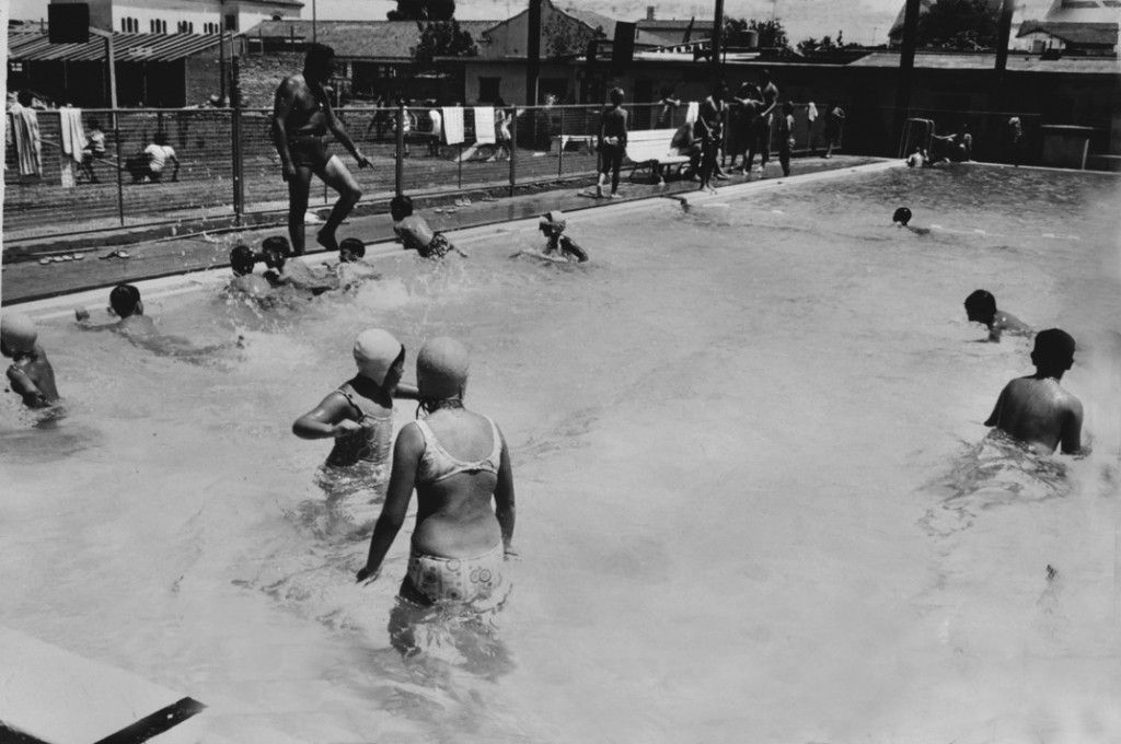 Jóvenes disfrutando de actividades deportivas y recreativas en el natatorio, durante la Colonia de Vacaciones en el Campo Municipal de Deportes de Vicente López.