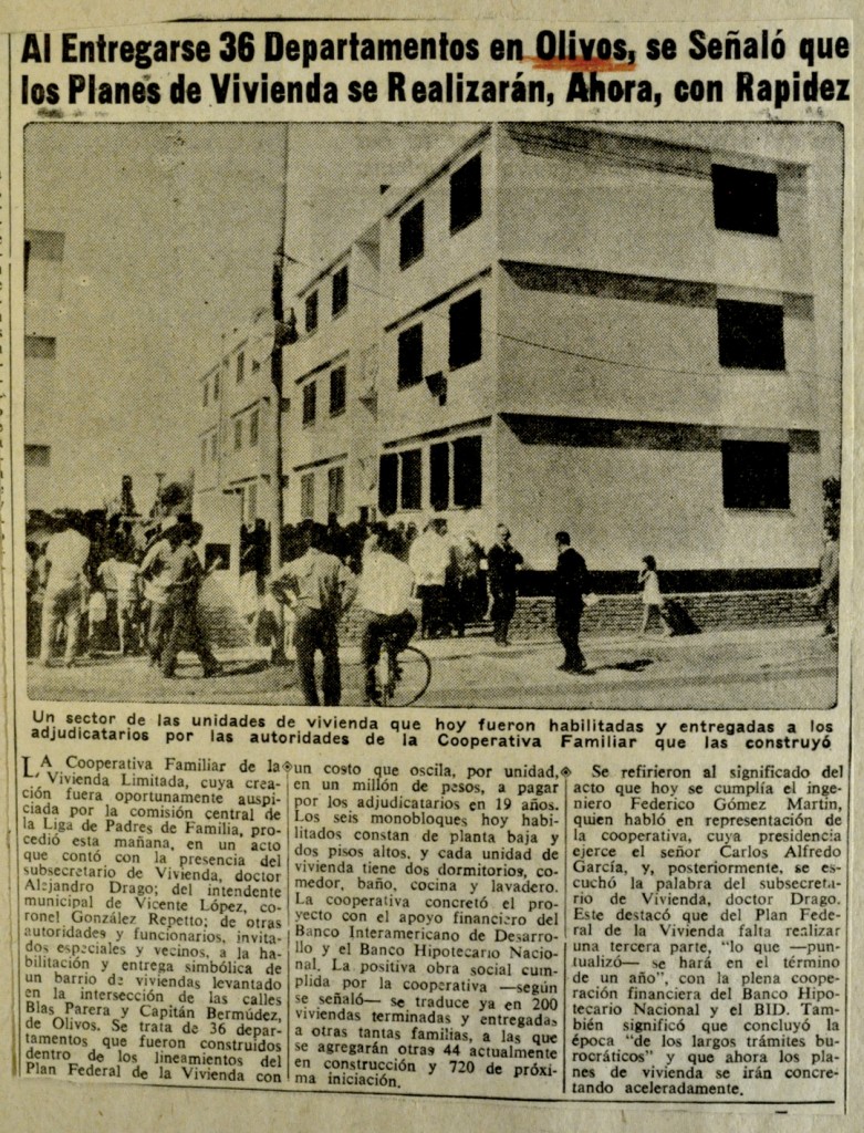 La Cooperativa Familiar de la Vivienda Limitada llevó a cabo la entrega simbólica de treinta y seis departamentos en las calles Blas Parera y Capitán Bermúdez, de Olivos.