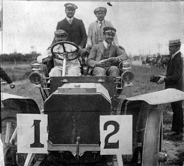 Participantes de la carrera de automóviles entre la Capital Federal y Tigre antes de la partida.