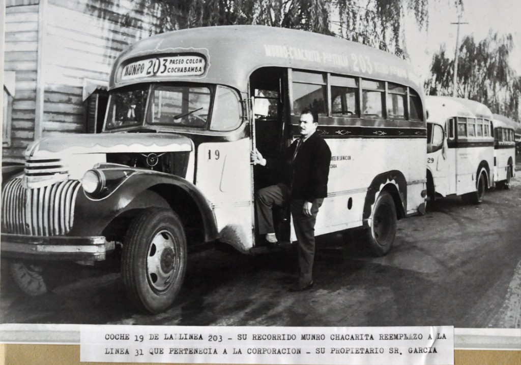 En la imagen, se muestra la unidad y el chofer del colectivo de la línea 203, identificado como Coche n° 9.