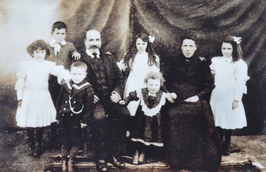 La fotografía muestra a los vecinos de Munro, José Salvador Saettone, junto a su esposa María Siccardi e hijos, en el año 1908.