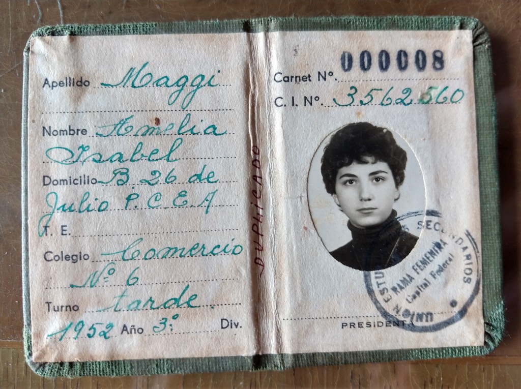 La credencial de la Unión de Estudiantes Secundarios perteneciente a Amelia Maggi, vecina de Vicente López.