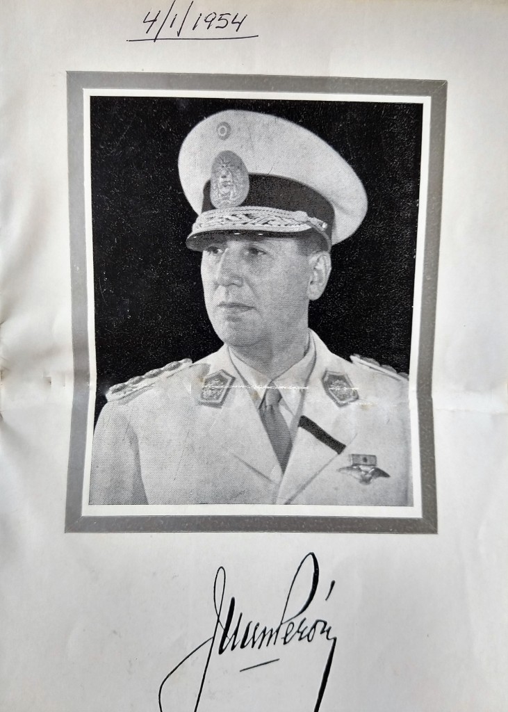 La imagen muestra un menú con la foto y firma del entonces presidente de la Nación, Juan Domingo Perón.