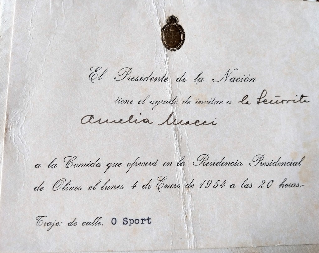 La imagen presenta una invitación a la cena realizada por el entonces presidente de la Nación, Juan Domingo Perón.