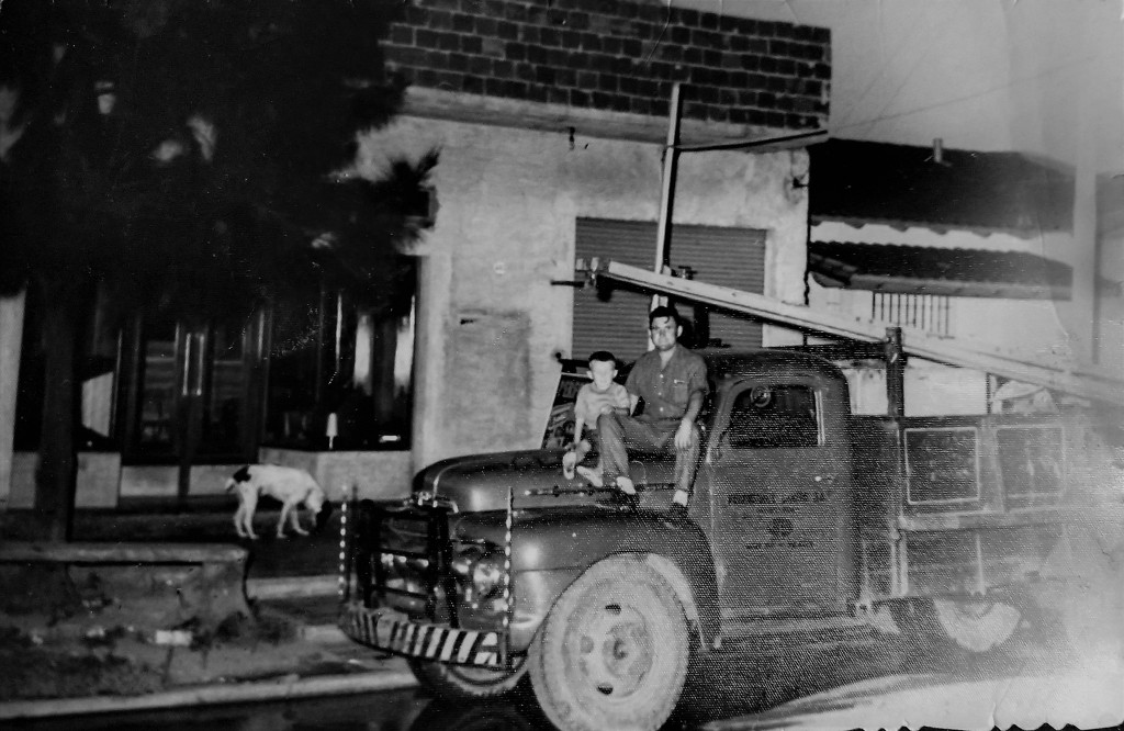 En esta imagen observamos al pocero del barrio de Carapachay, sentado en el capó de su camión.