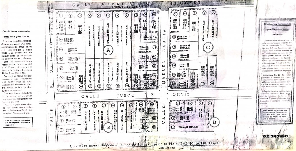 Loteo y subdivisión de terrenos en el barrio de Villa Adelina.