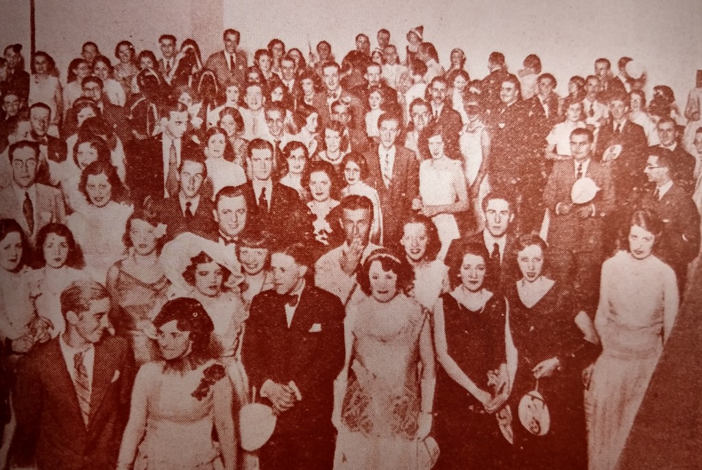 En la imagen se muestra un baile en la cancha de pelota del Club Atlético Banco de la Provincia de Buenos Aires, ubicado en Presidente Hipólito Yrigoyen 803, Vicente López.