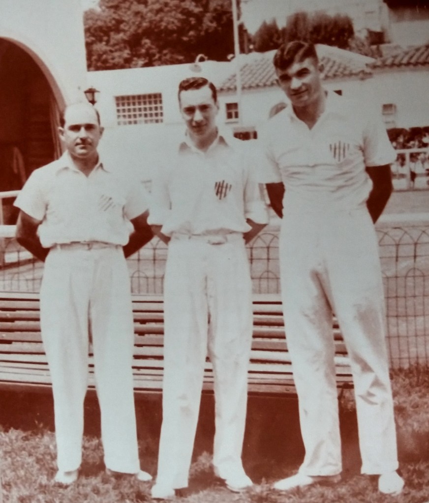 En la imagen se aprecia a Canaveri, Marré y Ferrón, destacados jugadores de bochas del Club Atlético Banco de la Provincia de Buenos Aires, situado en Presidente Hipólito Yrigoyen 803, Vicente López.