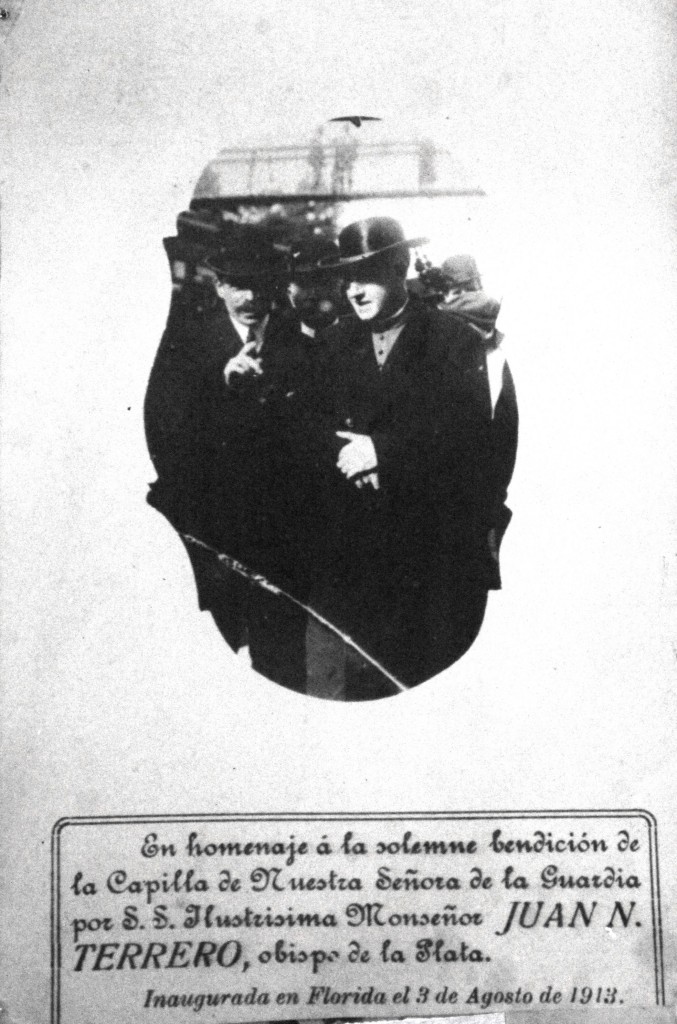 En honor a la inauguración y bendición de la Capilla provisoria de Nuestra Señora de la Guardia, hoy ubicada en la intersección de las calles Carlos F. Melo y Francisco Beiró en Florida, se muestra a Antonio J. Trabucco y Monseñor Juan N. Terrero, obispo de La Plata, quien sería el encargado de bendecir la capilla esa tarde.