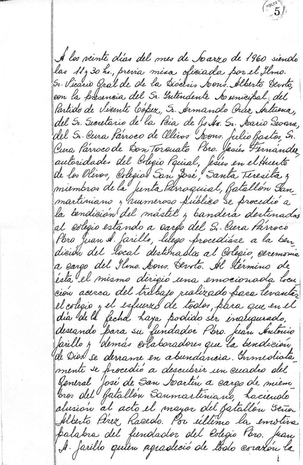 Acta de la Inauguración del colegio parroquial La Asunción de la Virgen.