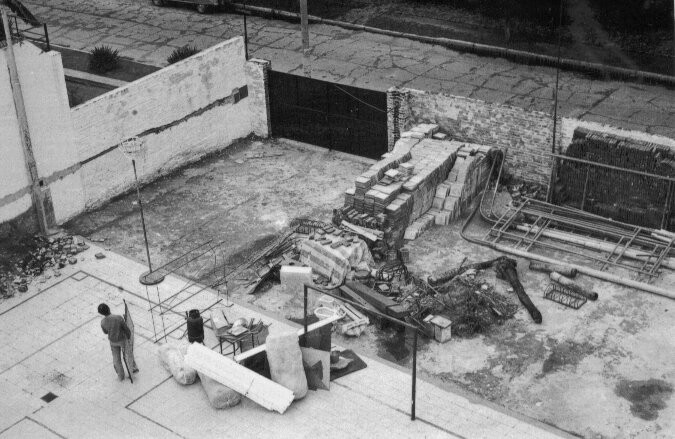 Construcción del actual patio del colegio parroquial La Asunción de la Virgen.