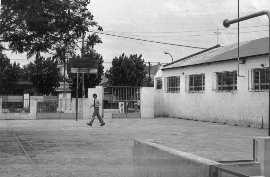 Vista del templo y el antiguo patio del colegio parroquial La Asunción de la Virgen.