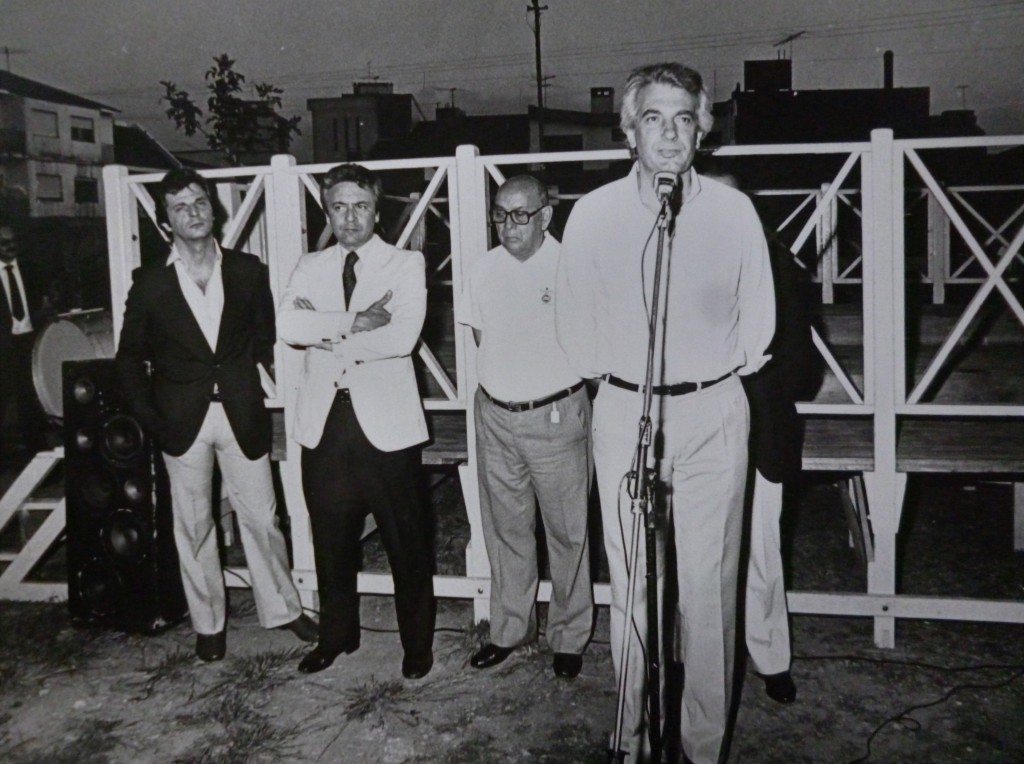 Ceremonia de anuncio de entrega de teléfonos para el barrio Los Intendentes de Villa Martelli, con la destacada presencia del entonces Intendente de Vicente López, Jorge Sabattini, el Senador Nacional Bermúdez, el Concejal Dellepiano y el entonces Presidente de la Sociedad de Fomento y Cultura de Villa Martelli, Héctor Salvador.