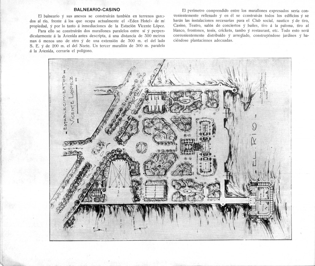 Segunda parte del proyecto presentado por Don Julio Thibaut, arquitecto y dueño del entonces Hotel Edén, para la costa de Vicente López. Su propuesta no solo implicaba mejoras en la infraestructura turística, como la construcción del hotel, sino que también abordaba el desarrollo urbano de la zona. Esto incluía la instalación de una gran avenida que conectara con la estación de tren local, mejorando así el acceso para los visitantes con el objetivo de transformar Vicente López en un centro turístico y urbano moderno.