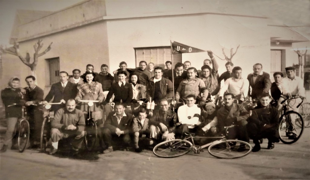 Socios del Club Unión de Olivos en la esquina de las calles San Lorenzo y Domingo Faustino Sarmiento, en Olivos, antes de salir en bicicleteada rumbo a la Iglesia de Lourdes.
