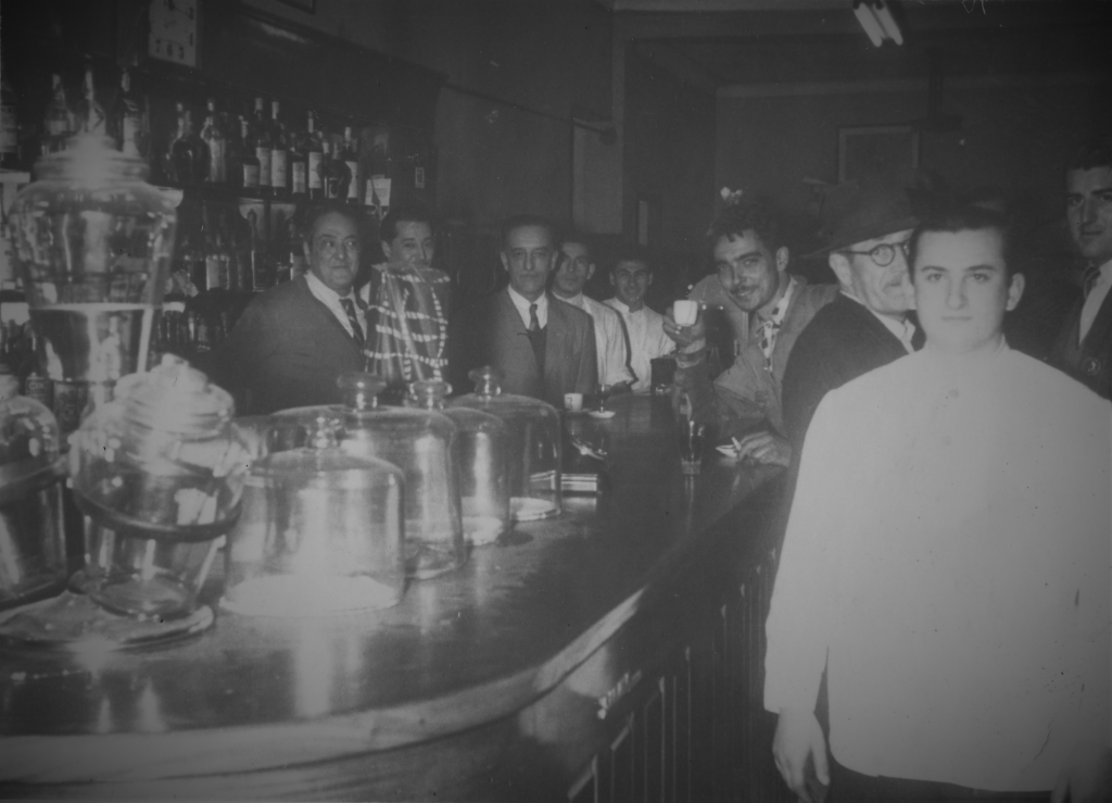 Empleados y clientes del Bar Santa Paula durante la década de 1950, en tiempos en que el bar era propiedad de Maritano y De Miguel.
