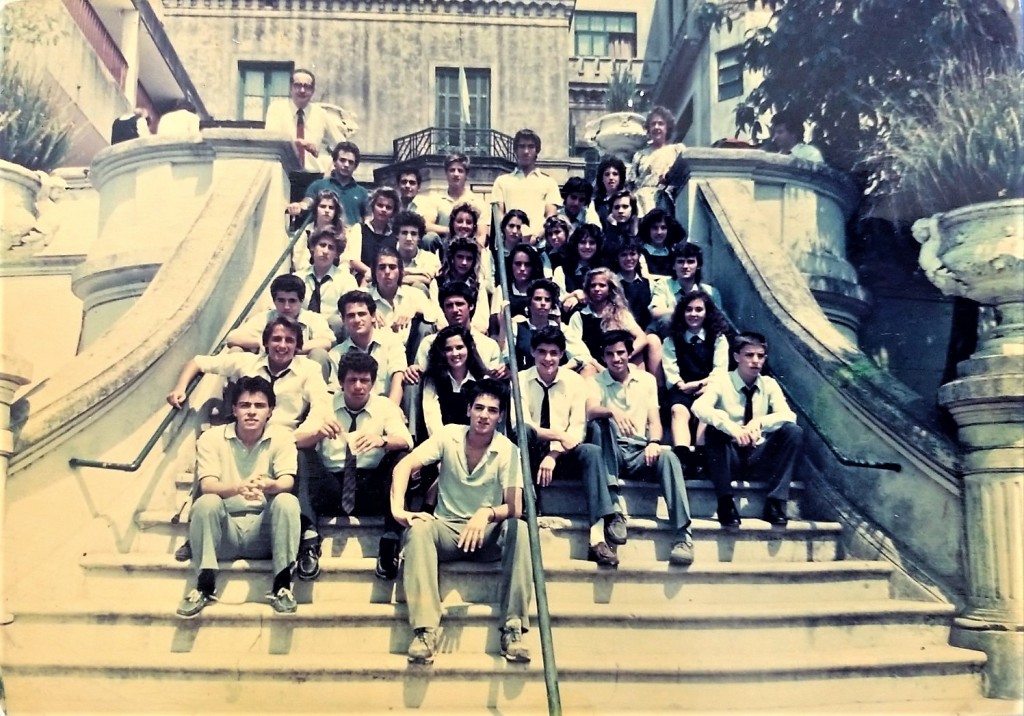 Alumnos del nivel secundario junto al rector del Colegio Highlands en las majestuosas escalinatas con sus macetones originales de 1880. Situado en Gaspar Campos 225, el colegio fue fundado en 1944 por May Nilsson de Torre como una institución educativa bilingüe y laica. El castillo que albergaba el colegio data de 1880 y fue construido por la familia Bosch con planos del arquitecto Juan Antonio Buschiazzo.