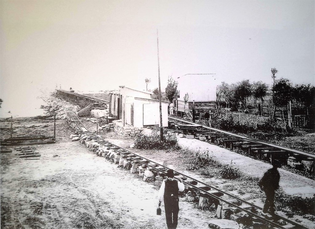 Obras realizadas en la construcción del Puerto de Olivos. Aquí se distinguen las vías de zorra que se utilizaban para transportar piedras, y los primeros cimientos de la actual escollera.En 1919, comenzó la construcción del espigón en la ensenada de Olivos, seguida por las obras de dragado del espejo de agua donde se edificaría el futuro puerto de Olivos. En esta etapa, se distinguían las vías de zorra utilizadas para transportar piedras y los primeros cimientos de la actual escollera.