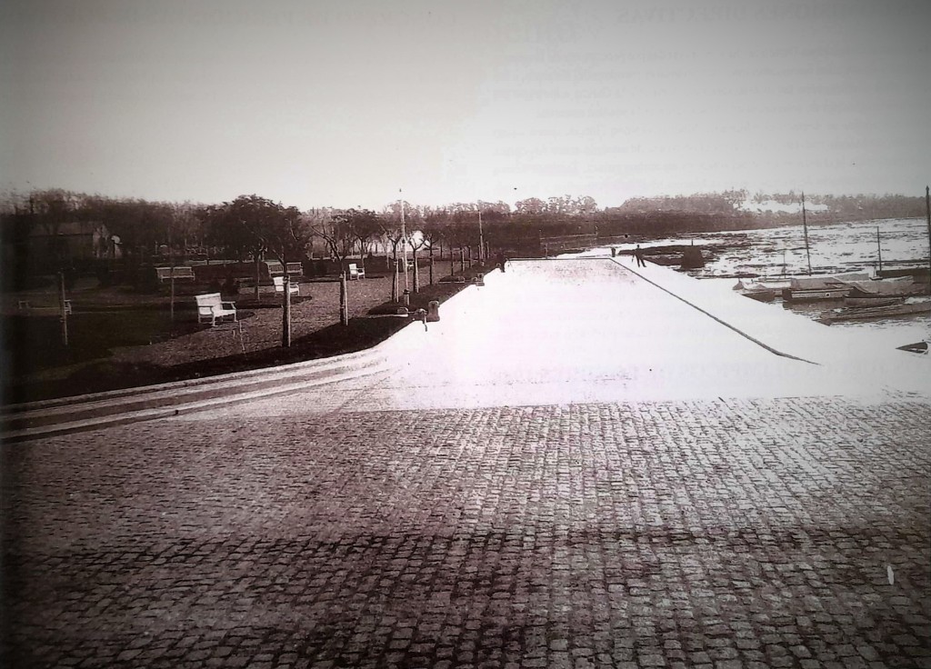 Vista del Puerto de Olivos desde la calle Corrientes, donde actualmente se encuentra la Prefectura Naval Argentina.