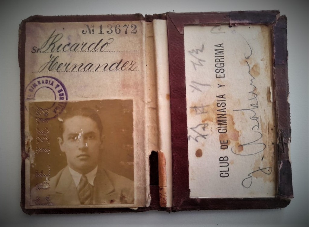 Credencial de socio de la sede del Club Gimnasia y Esgrima de Buenos Aires, que se ubicaba en donde hoy se encuentra el Club Banco Nación, en la calle Zufriategui al 1200.