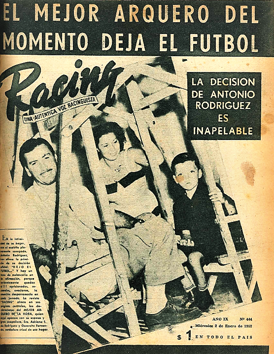 Noticia publicada en la revista Racing en 1952, en la que se menciona el retiro de Antonio Oscar Rodríguez debido a su elección como Intendente de Vicente López. Rodríguez gobernaría el municipio entre 1952 y 1955, dejando el cargo tras el golpe de estado perpetrado por la autodenominada Revolución Libertadora.