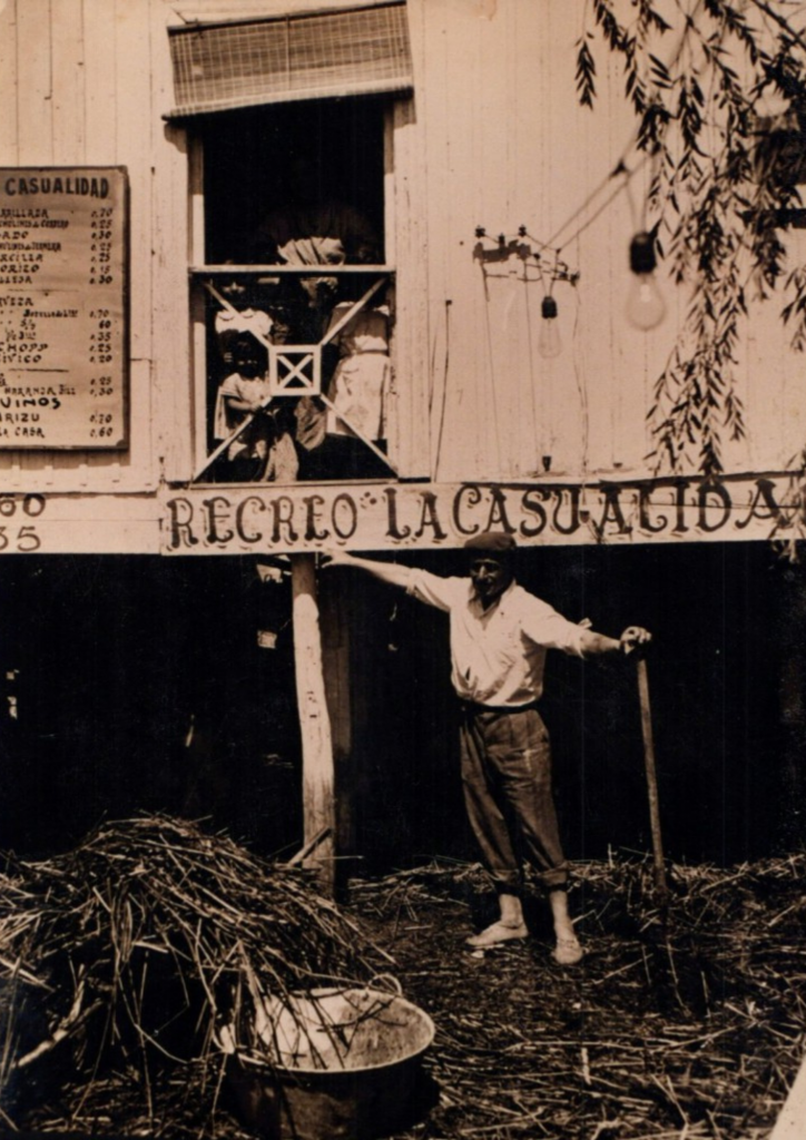 En esta fotografía, tomada en 1932, se puede ver al dueño del recreo La Casualidad, ubicado en la intersección de Corrientes y Avenida del Libertador, en el barrio de Olivos, señalando el nivel alcanzado por las aguas del río debido a una fuerte sudestada.
