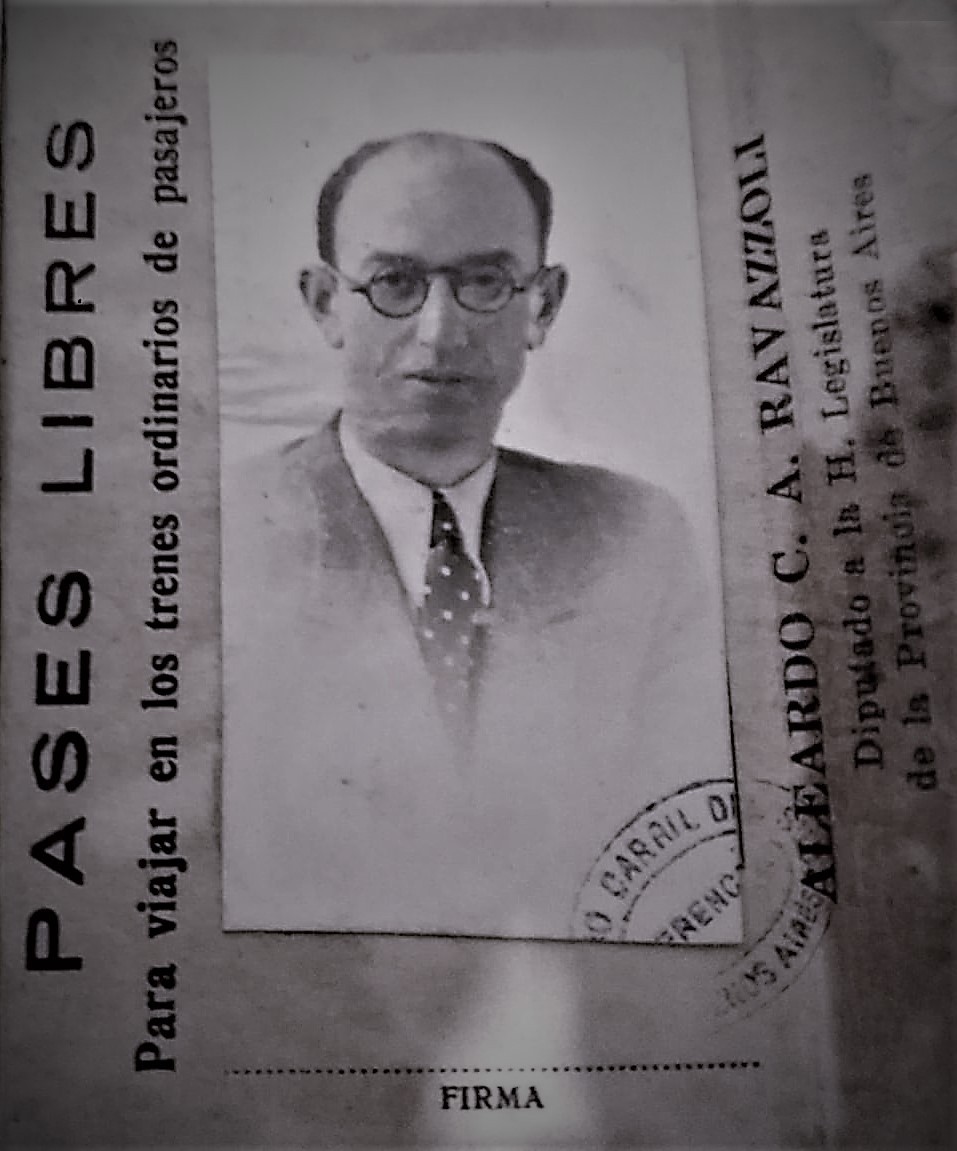 Pase libre de ómnibus del entonces Diputado de la Provincia de Buenos Aires por la Primera Sección Electoral, Aleardo Ravazzoli.