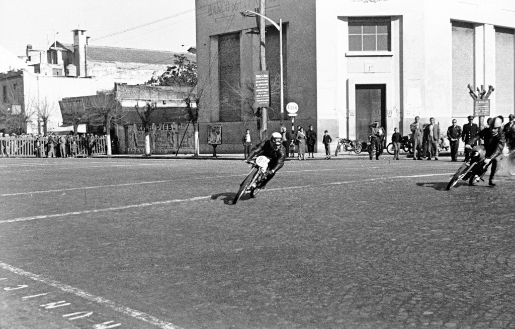 Carrera de motociclismo realizada en Avenida Maipú, entre las actuales calles Ricardo Gutiérrez y Mariano Pelliza.